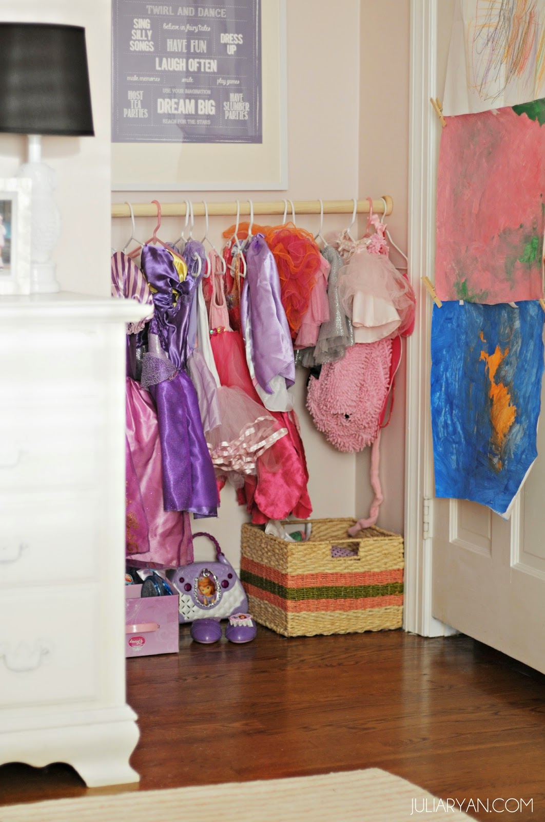 ReplyDeleteI love this idea, Julia! My 18 month old's (sidenote: it truly amazes me how early they pick up on the princess thing!) dress up "trunk" is already full to the seams, so this is the perfect solution!
